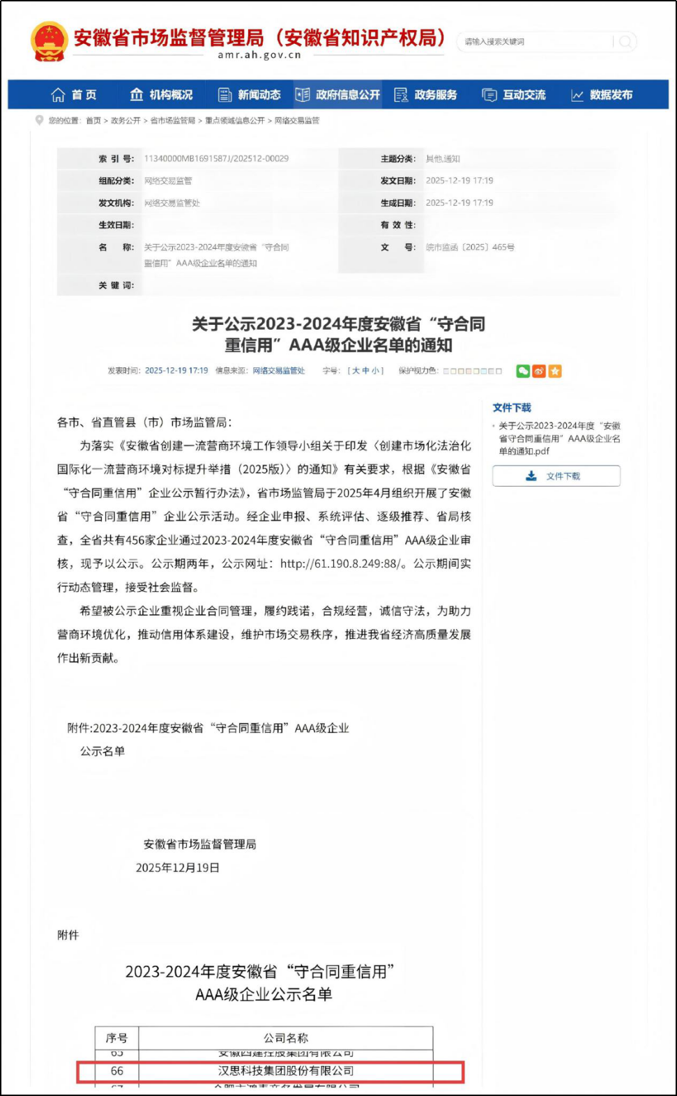 喜讯!以信立企,以诚筑梦|汉思科技集团荣获“省AAA级守合同重信用”荣誉称号